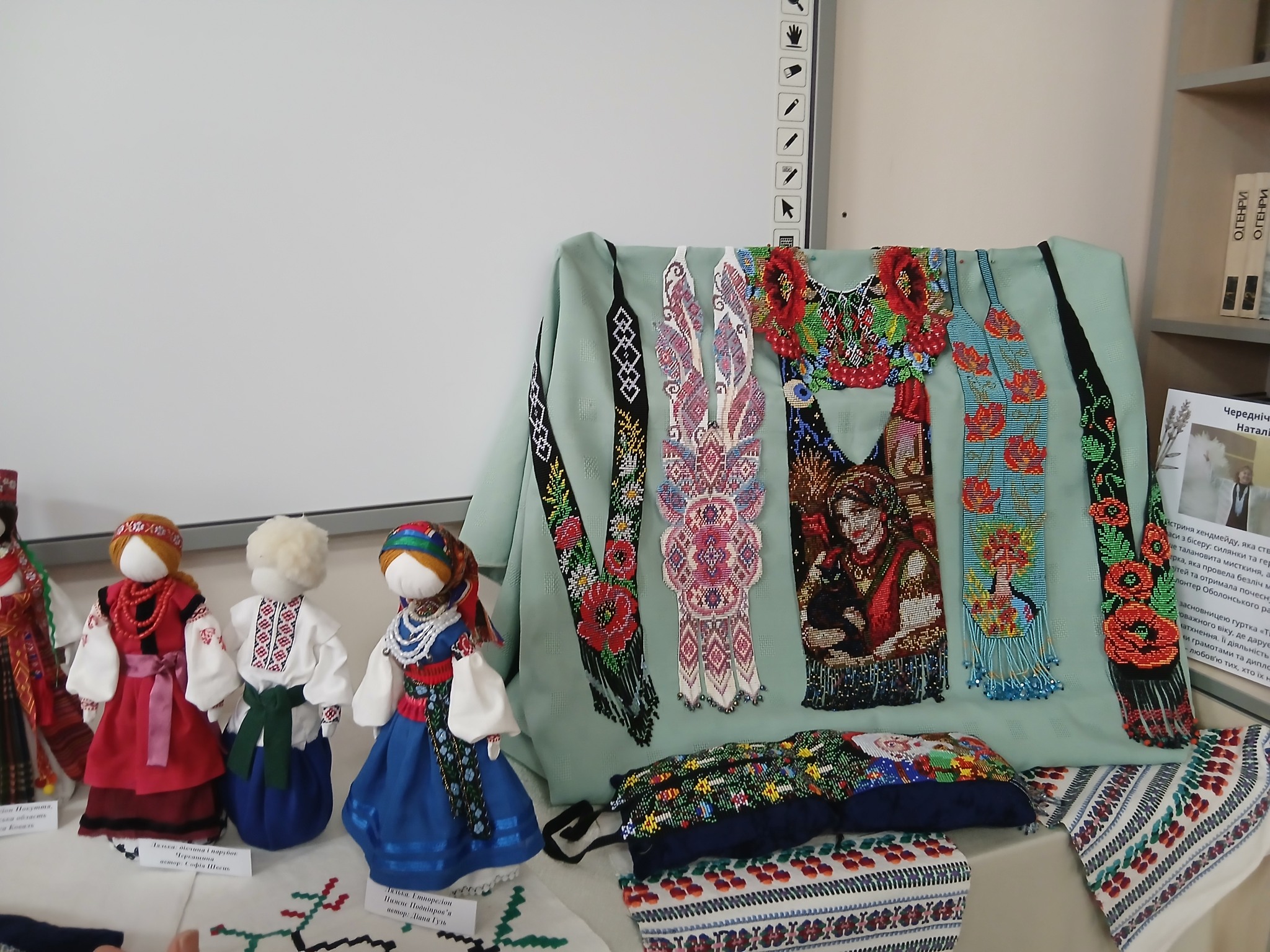 Ця 14-та виставка в проєкті “Золота спадщина” обʼєднала митців різних регіонів та різних творчих напрямків. Неймовірні зимові пейзажі фотохудожників з клубу “Толока” (засновник клубу та співорганізатор виставки – пан Анатолій Джигир); чудові ляльки мотанки діток із творчого гуртка народної майстрині з Харківщини Любові Поддоліної, гердани майстрині з Києва Наталі Чередніченко; силянки та кризи членкині спілки майстрів з Білої Церкви Тетяни Гулідової; ніжні весільні віночки майстрині з Житомирщини та співзасновниці проєкту пані Наталі Джигир. Також чудесні намиста Світлани Головчук і прекрасний спів Людмили Калити з гурту “Деревичка”, який супроводжував це дійство, зробили наше свято!