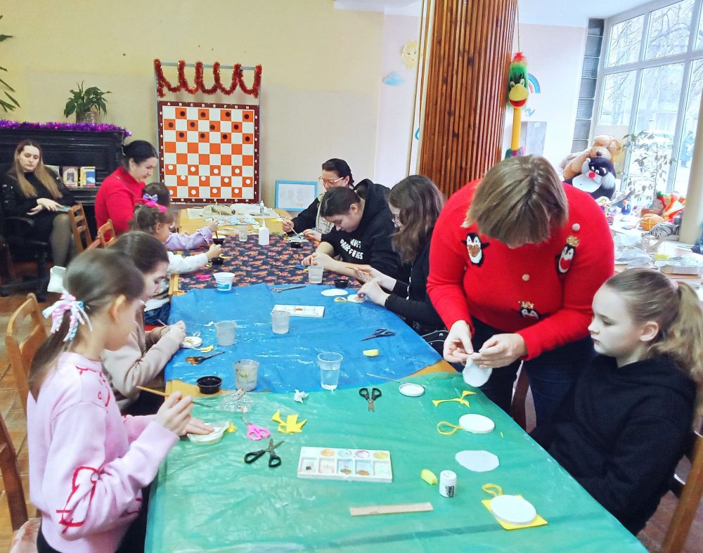 Діти й дорослі разом виготовляли зимові прикраси: сніжинки, ялинкові кульки та інший святковий декор. Техніка декупажу додала кожному виробу неповторності, перетворивши прості предмети на справжні творчі шедеври. Учасники майстерки створили чудові сувеніри для близьких і декор для своїх осель. До того ж отримали море позитивних емоцій та творчого натхнення.